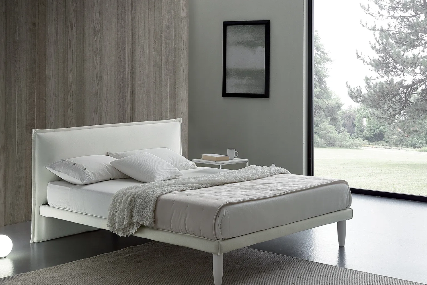 Scegli il letto Michelle, un versatile modello moderno imbottito disponibile con giroletto a fascia alta o bassa. Completamente personalizzabile nei rivestimenti e nei piedini, offre la massima libertà compositiva per arredare la tua camera con stile ed eleganza su misura.