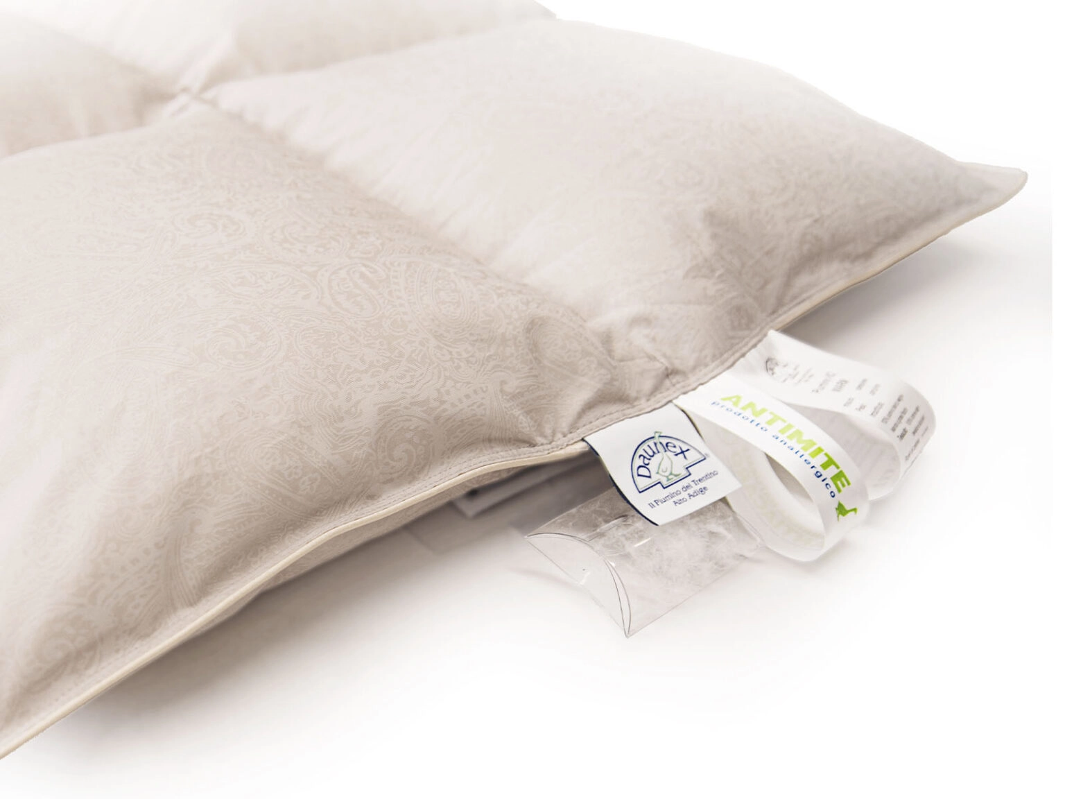 Piumino K2 Warm di Daunex, una soluzione di prestigio realizzata interamente in Italia per chi non accetta compromessi sulla qualità del sonno. Imbottito con il più pregiato 100% piumino bianco vergine Islanda a grossi fiocchi, il K2 Warm offre un incredibile Filling Power di 850 cuin, garantendo un calore avvolgente (“Warm”) senza peso eccessivo, ideale per gli inverni più rigidi. Il rivestimento in 100% cotone satin jacquard color champagne aggiunge un tocco di eleganza raffinata alla camera da letto, mentre il confezionamento a cassette con fettucce distanziatrici interne assicura una distribuzione uniforme dell’imbottitura e una traspirabilità ottimale. Scegliere K2 Warm significa investire in un piumino d’oca matrimoniale di lusso (disponibile nelle misure 250×200 e 250×220), certificato Oeko-Tex e Nomite, perfetto anche per chi soffre di allergie agli acari ma desidera il tocco soffice e naturale della vera piuma.